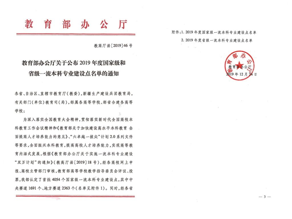 学校三个专业入选教育部首批一流本科专业名单