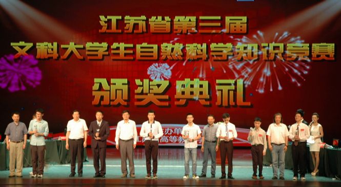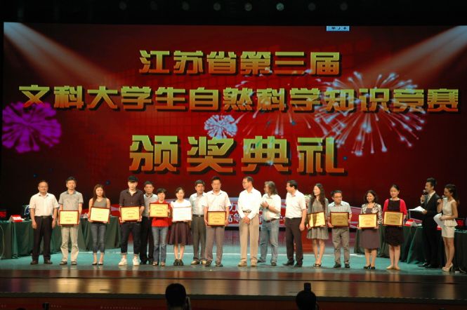 本网讯 6月27日下午,江苏省第三届文科大学生自然科学知识竞赛决赛在南京举行。我校商学院朱思齐同学喜获佳绩,荣获一等奖,我校荣获“优秀组织奖”。另外,艺术学院田野等5名同学荣获三等奖,文法学院肖正康等40名同学荣获优秀奖。