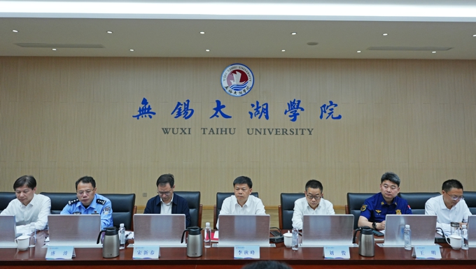 为保障“五一”节假日期间校园安全稳定,4月30日下午,无锡市委常委、宣传部部长李秋峰,市委副秘书长刘俊带队来无锡太湖学院专题调研校园及周边安全稳定工作。市教育局局长宋新春,市消防救援支队副支队长王明,市公安局内保支队政委盛波,市政府督导室专职副主任冯益民,市教育局安保处处长李洺,滨湖区教育局党委书记、局长王永胜,滨湖区政府办副主任秦方圆,滨湖公安分局内保大队副队长曹雪、滨湖公安分局荣巷派出所所长支夏淇等陪同调研。学校理事长金秋萍,党委书记孙玉坤、校长金成,校领导丁涛、吴健荣、陈鹏飞、阙明坤、毛照红、郑斌等出席。校办、党委宣传部、学工处、保卫处、后勤基建处等相关部门负责参加。