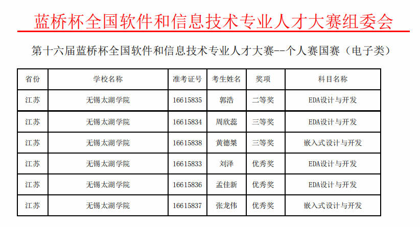 本次大赛启动以来,物联网工程学院高度重视,通过集中学习、赛题分析等方式进行辅导答疑,帮助学生积累备赛经验,增强备赛信心。此次成绩的取得,展现了我校学子在软件和信息技术领域的技术积淀与创新活力,更是学校深化教学改革、强化实践教学、注重学生创新能力培养的成果体现。学校将持续深化“以赛促学、以赛促教”的理念,不断强化学生专业素养和实践能力,持续提升应用型一流人才培养质量。(供稿:物联网工程学院)