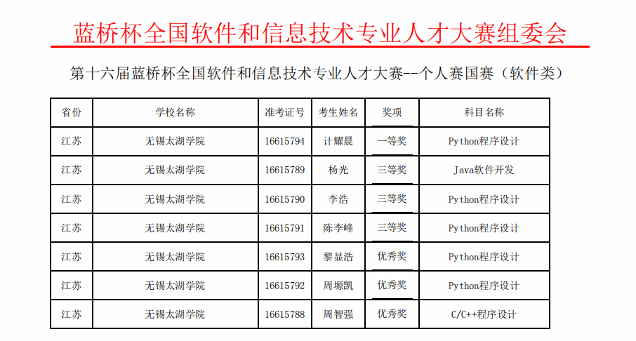 2025年6月15日,由工业和信息化部人才交流中心主办的第十六届蓝桥杯全国软件和信息技术专业人才全国总决赛圆满落幕。我校物联网工程学子共12人参加全国总决赛,斩获一等奖1项,二等奖1项,三等奖5项,优秀奖5项。