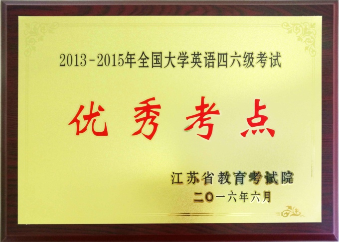 本网讯 6月13日,江苏省2016年上半年全国大学英语四六级考试考务工作会议在南京召开,会议表彰了一批先进单位、先进个人。经省教育考试院严格考评,我校被评为江苏省“2013-2015年度全国大学英语四六级考试优秀考点”。