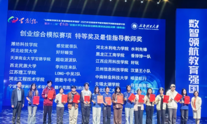近日,2025年“学创杯”全国大学生创业综合模拟大赛总决赛(创业综合模拟赛项)在成都理工大学隆重举行。此次大赛由高等学校国家级实验教学示范中心联席会经济与管理学科组中国陶行知研究会主办,成都理工大学承办,杭州贝腾科技有限公司提供技术支持,作为国内极具影响力的创业赛事,大赛自启动以来便备受瞩目,吸引了全国1500多所院校、超过10万支队伍踊跃参赛。经过层层筛选,最终有221所高校的287支队伍脱颖而出,晋级全国总决赛高教组的角逐,近千名师生齐聚赛场,共同见证巅峰对决。