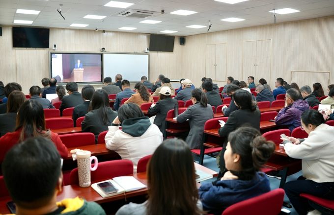 11月21日下午,学习贯彻党的二十届四中全会精神省委宣讲团宣讲报告会在东南大学四牌楼校区大礼堂举行。江苏省委宣讲团成员,省教育厅厅长、党组书记、省委教育工委书记江涌作宣讲报告。学校校长金成,执行理事长、副校长蒋丹,执行校长方忠,校领导吴健荣、丁涛、陈鹏飞,党委委员及各职能部门和二级学院党总支负责人,以及学生党员代表在我校分会场参加会议。