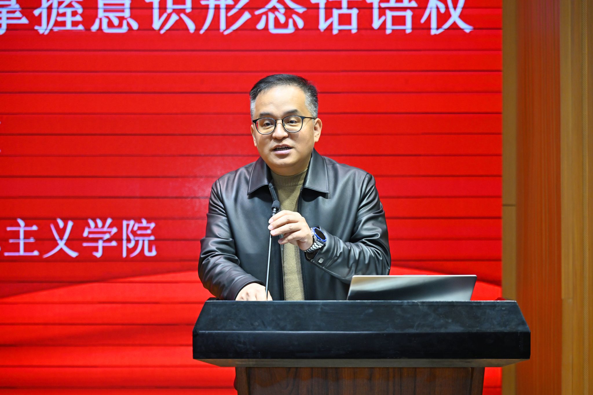唐忠宝教授以“学习习近平文化思想 掌握意识形态话语权”为主题作专题辅导。他以深刻把握“七个着力”重大要求为主线,用鲜活的案例串联起党的文化领导权巩固、社会主义核心价值观培育、中华优秀传统文化“两创”、国际传播能力提升等关键环节,清晰呈现了意识形态话语权建设的理论逻辑与实践脉络。
