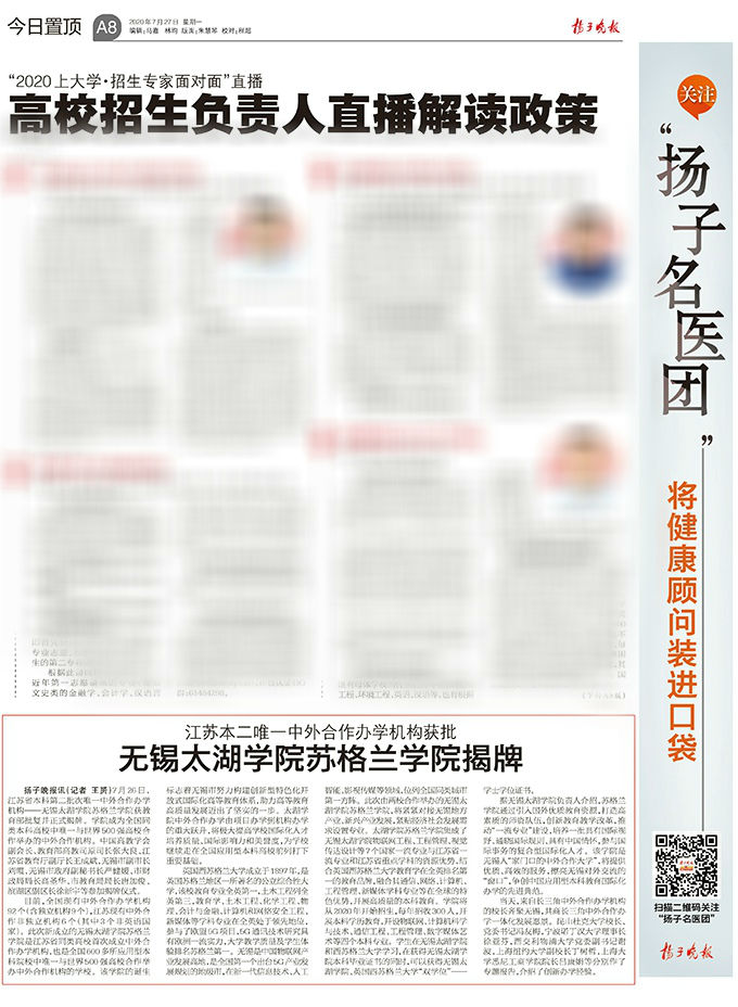 据无锡太湖学院负责人介绍,苏格兰学院通过引入国外优质教育资源,打造高素质的师资队伍,创新教育教学改革,推动“一流专业”建设,培养一批具有国际视野、通晓国际规则、具有中国情怀,参与国际事务的复合型国际化人才。该学院是无锡人“家门口的中外合作大学”,将提供优质、高效的服务,擦亮无锡对外交流的“窗口”,争创中国应用型本科教育国际化办学的先进典范。