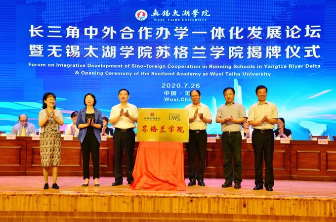 7月26日,无锡太湖学院苏格兰学院揭牌,标志着学校办学迈上新的台阶,这是江苏省本科第二批次仅有的一所中外合作办学机构,填补了同类高校中外合作办学的空白,也是全国600多所应用型本科院校中仅有的与世界500强高校合作举办中外合作机构的学校。作为合作方的英国西苏格兰大学还是全英仅有的参与欧盟5G项目的大学。无锡太湖学院苏格兰学院的学生在获得我国本科毕业证书、学士学位证书的同时,也将获得英国西苏格兰大学的学士学位证书。
