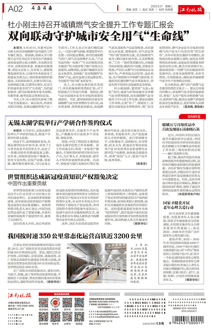 转载自《江南晚报》2022年6月21日第A02版:今要闻