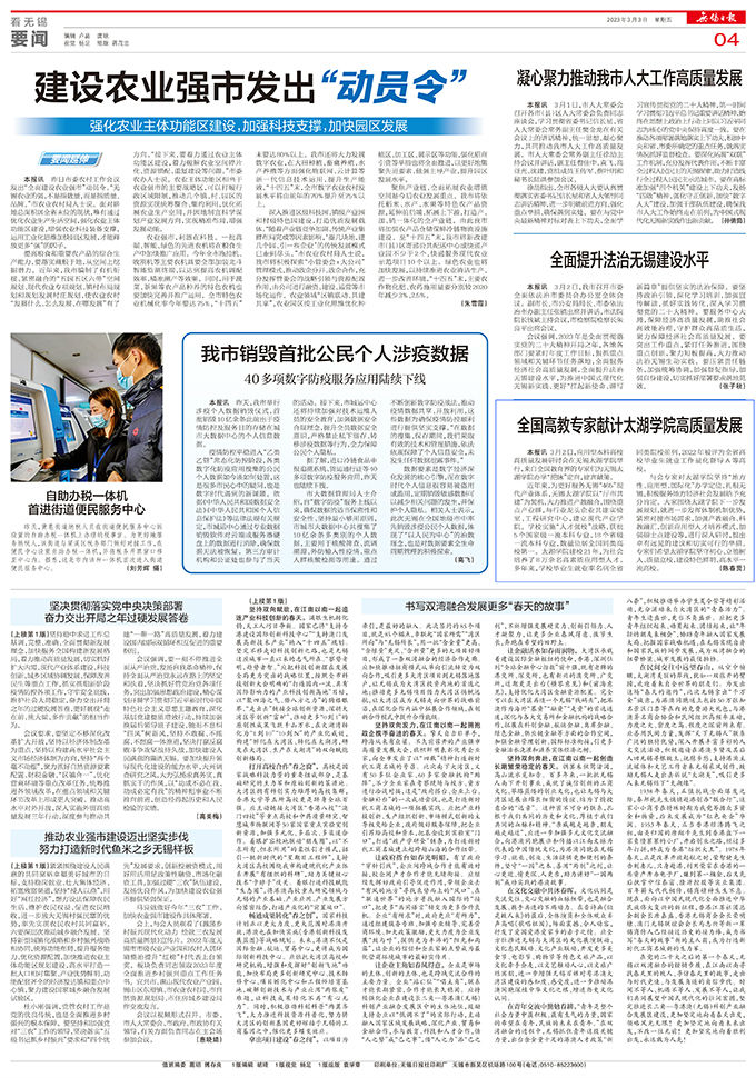 转载自《无锡日报》2023年3月3日 第A04版:要闻