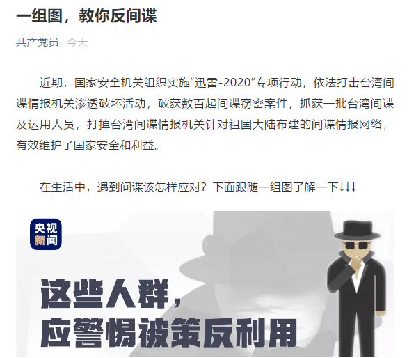 近期,国家安全机关组织实施“迅雷-2020”专项行动,依法打击台湾间谍情报机关渗透破坏活动,值此重要时间节点,为深入学习习近平总书记提出的“总体国家安全观”,大力宣传国家安全思想,提高全体党员维护国家安全的意识,10月11日-13日,艺术学院党总支组织开展了“增强国家安全意识,自觉维护国家安全”专题学习活动,全体教工与学生党员齐刷刷坐在电视机前观看《新闻联播》、《焦点访谈》、《海峡两岸》等国家安全教育的相关学习视频,全体党员结合自身实际畅谈了自身对国家安全的认识和思考。