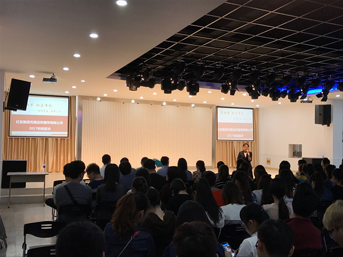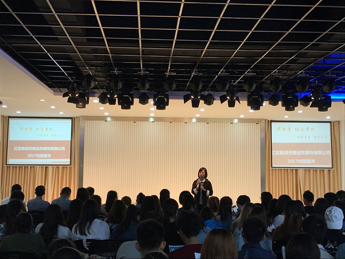 本网讯 10月24日下午2时,我校艺术学院邀请红豆集团远东服饰有限公司专业人员,在大学生活动中心举行了以艺术学院为主的多专业学生参加的校园专场招聘宣讲会。