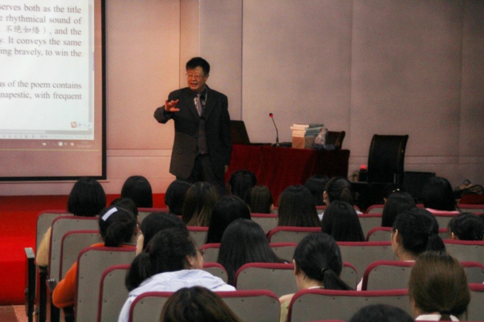 本网讯 10月27日下午,我校外国语学院邀请江南大学外国语学院英美文学研究所原所长刘剑锋教授为我校英语专业大二学生作英语诗歌鉴赏专题讲座。