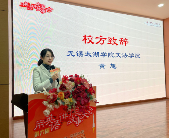 为了搭建跨文化交流桥梁,推动中华优秀传统文化走向世界,12月18日下午,第六届“用英语讲中国故事”大会无锡选区启动仪式在无锡太湖学院大学生活动中心A顺利举行。本次活动由中国教育电视台与新航道国际教育集团联合主办,无锡太湖学院文法学院承办,无锡太湖学院文法学院副院长黄旭(主持工作)、副院长吴旻昊、副院长刘荔,文法学院党总支副书记俞昊波,新航道国际教育无锡学校校长王彬等嘉宾应邀出席,数百名师生到场参与。