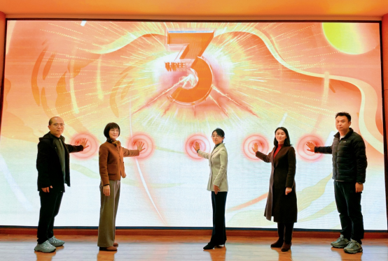 仪式现场亮点纷呈,刘院长与俞书记共同为“无锡太湖学院用英语讲中国故事教育实践基地”揭牌。随后,五位嘉宾共同按下启动手印,正式拉开无锡选区赛事序幕,现场师生齐声喊出“中华文化世界传播”的口号,气氛热烈高涨。