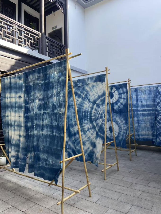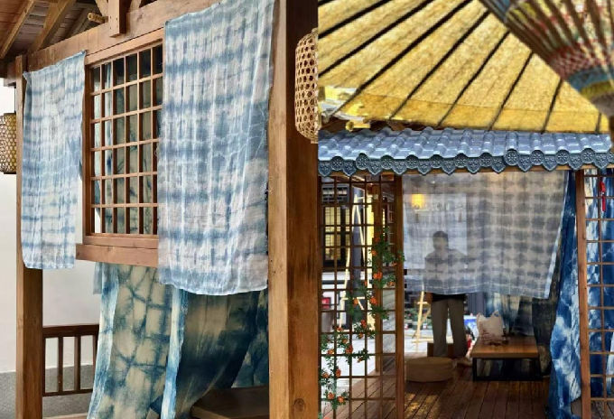 如今推开时光染坊的木门,你会看见——草木染云帘在风中轻旋,蓝染布幔如流水垂下, 这里不只是一个展示空间,更是一所活的江南色彩博物馆,记录着我们如何用最古老的方式,与自然、与历史对话。