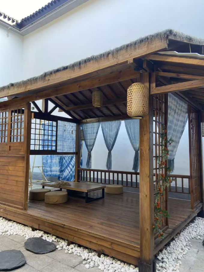 从空荡厢房到时光染坊,我们用了整整半个月。还记得初见时,这座百年老宅静默伫立。阳光透过雕花木窗,照见空气中浮动的微尘。我们站在空荡荡的厢房里,想象这里将成为草木染的创作天地——从无到有,从简单到丰富,每一个角落都注入了我们的心血。