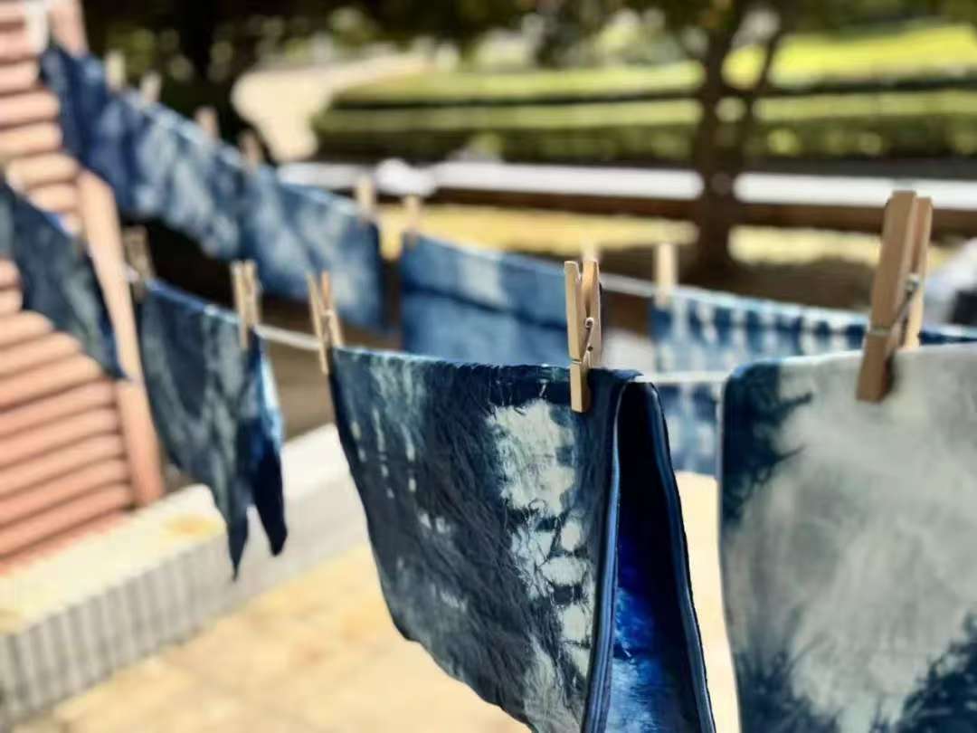 创作,让草木染在文脉深处扎根。于顾宪成昔日治学的古院落中,我们架染缸、燃薪火,以蓼蓝为引,熬煮天然染萃,浸润素布之上。每一件文创皆由师生携手而成:从设计构思到浸色固染,再到穿针引线的缝制,全程亲力亲为。手作茶席裹挟着指尖的温度,让传统技艺与古宅气韵共生。