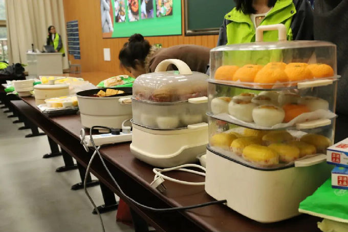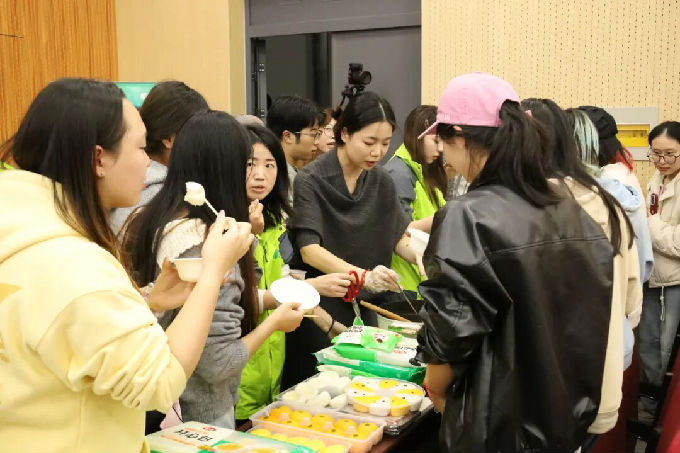 宣讲会结束后,现场特别设置了安井美食试吃环节。宣讲中提及的手撕红糖馒头、大粒纯虾滑、桂花糕等40余款"破亿单品"悉数亮相,香气氤氲。学生们自觉有序排队,依次品鉴,在唇齿留香间真切感知产品魅力。不少同学边品尝边交流心得,将刚刚听到的"锁鲜装"技术、产品卖点与舌尖体验逐一印证。这场沉浸式的味蕾实践,不仅让同学们对安井食品“责任、正道、行动、共赢”的品牌理念有了温度感知的理解,更在美食共享中拉近了校企距离,为即将启航的真实项目合作奠定了认知与情感的双重基石。