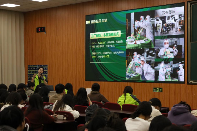 安井电商部直播运营吴芊芊与主播林朦妍以真实数据诠释了"知行合一"的实践力量:无锡电商部自2021年8月开播以来,销售额从当年7-8万元跃升至2024年突破8000万元,单场销售额从几千元增至数十万元,月销售额从100万元攀升至两三百万元。团队现有50%为00后主播,其中零基础新人陈小白入职仅两个月,即在"双十一"创下单小时销售额15万元的佳绩。这些鲜活案例深刻印证了艺术学院“在实践中成长”的培养理念。吴芊芊指出:“优秀主播不仅是镜头前的表演者,更是产品专家、销售节奏大师和内容共创者,需深度参与视频拍摄、数据分析、运营优化等全链路环节。”这种从单一技能到复合能力的跨越,正是应用型人才的核心竞争力所在。2024年“双11”期间,安井官方旗舰店更实现单场直播84小时不停播,全店铺销售额突破1029万元,其中自播间产出占比达83.95%,展现了强大的实战运营能力。