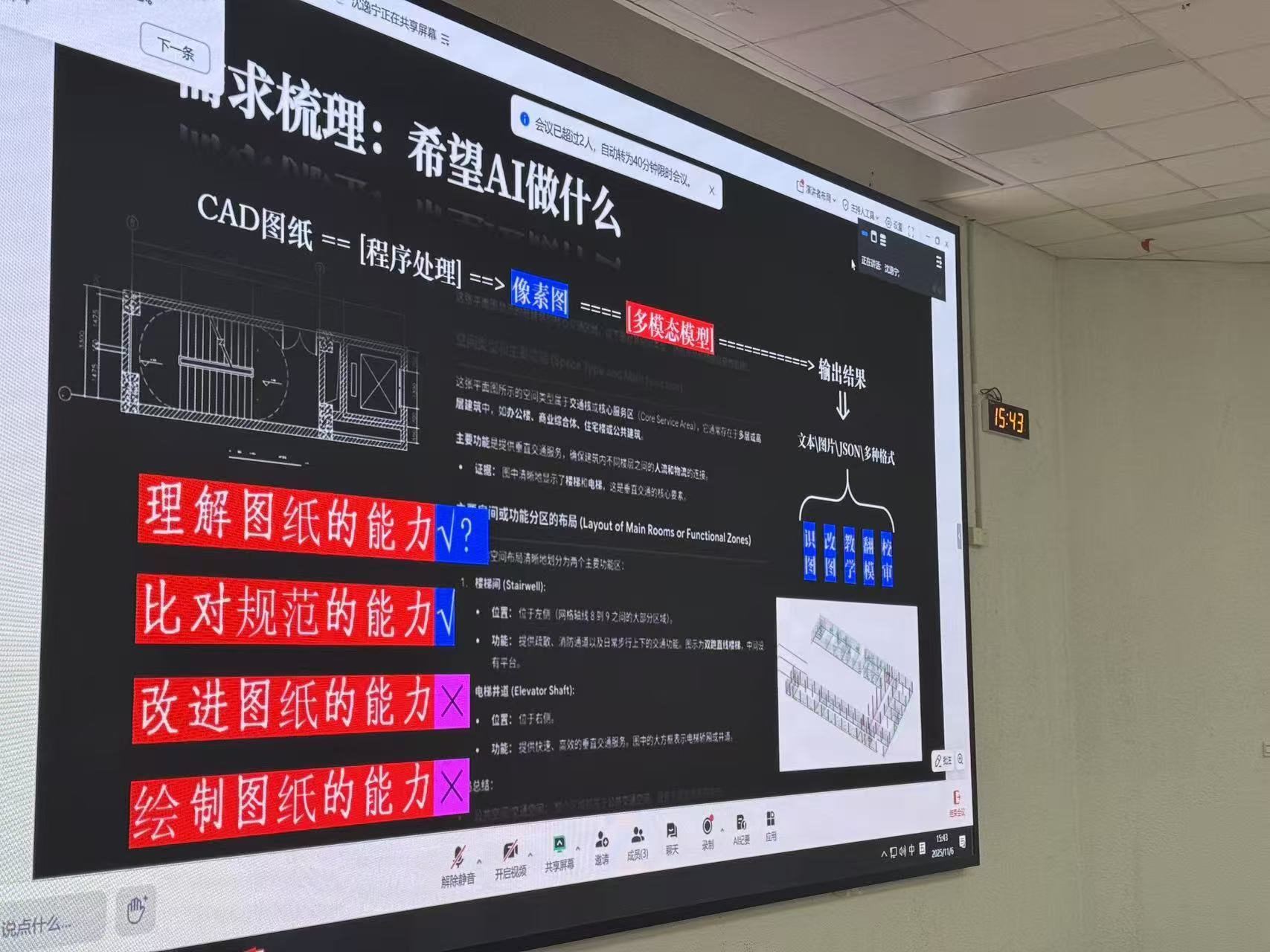 活动中期,针对人工智能在建筑领域的落地,沈老师重点拆解“感知层”模型能力,从CAD图元识别,到文本标注、图例符号提取,再到局部与全局上下文关联,配合YOLO模型在CAD图元识别中的精度-置信度曲线分析,直观呈现AI技术的应用潜力。他强调:“数智技术是连接建筑历史与未来的纽带,既能让现代建造更智能,也能让历史建筑的价值在数字时代被重新看见。”现场的同学们紧盯屏幕,认真聆听沈益宁老师的数智化技术分享,并不时记录下关键内容。