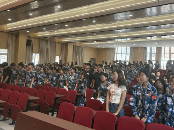 接着,典礼进行升国旗奏唱国歌环节。在庄严的国歌声中,五星红旗缓缓升起。全体师生肃立行注目礼,炽热的爱国情怀在心中激荡,象征着新生们在大学征程中锚定信仰、坚守初心的信念。