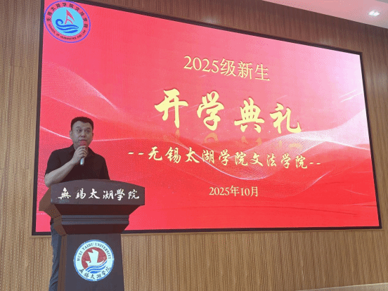 为迎接2025级新同学的到来,帮助他们顺利开启大学新篇章,凝聚师生力量、传承学院精神,无锡太湖学院文法学院于10月12日在7号楼102教室隆重举行新生开学典礼。本次开学典礼由文法学院副院长(主持工作)黄旭、副院长刘荔、吴旻昊,文法学院党总支副书记俞昊波以及全体2025级新生共同参加。