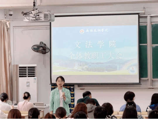 为总结近期工作成果,明确学院下一阶段发展方向,无锡太湖学院文法学院于10月13日下午在8号楼106教室召开全体教职工大会。文法学院副院长(主持工作)黄旭、副院长刘荔、副院长吴旻昊,文法学院党总支副书记俞昊波以及全体教职工共同参会。
