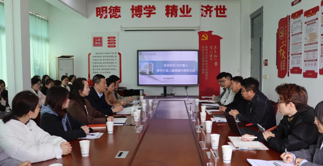 为深化校院合作,共促健康科普工作高质量发展,2026年3月13日,无锡太湖学院健康医学院与无锡市儿童医院在5-A209会议室举行健康科普合作交流座谈会。无锡市儿童医院副院长游庆军,护理部副主任(主持工作)冯晓艳等医院代表,健康医学院副院长(主持工作)宋绍征、无锡太湖学院团委书记陈朕、健康医学院党总支副书记(主持工作)胡宇、健康医学院院长助理杨小仙等代表出席会议。