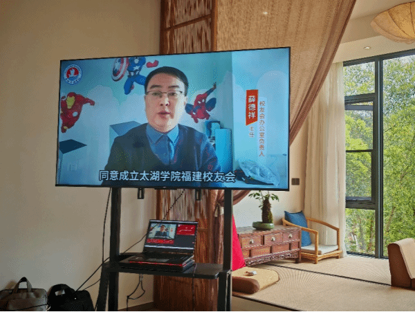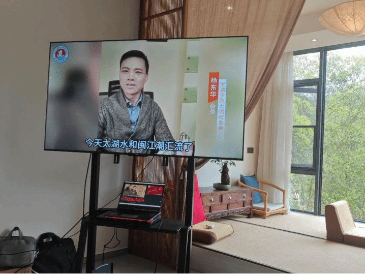 山水迢遥有知音,同学情谊一线牵。太湖学院无锡校友会会长杨东华线上致辞,对福建校友会的成立表示衷心祝贺,祝福建校友会像榕树一样,根植大地,枝繁叶茂!希望无锡福建两地校友能够南北呼应,资源共享,让每一位校友都能在这里找到成长的“合伙人”。