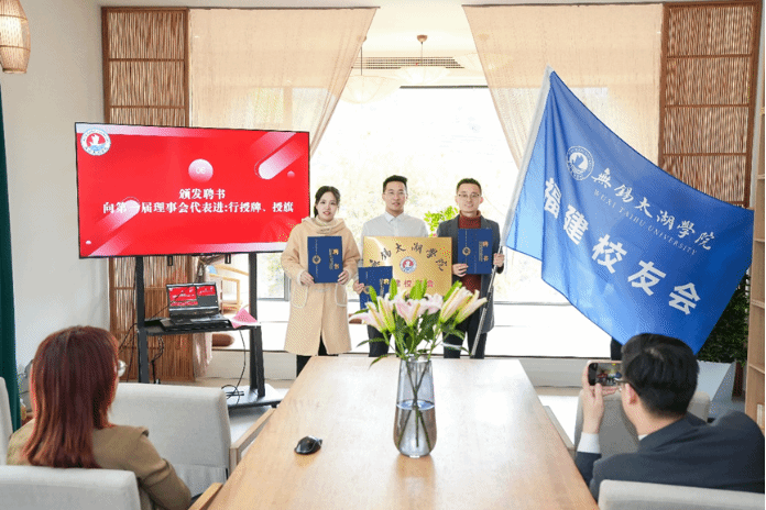 会上,无锡太湖学院校友会办公室薛德祥线上宣读了《关于同意成立太湖学院福建校友会的批复》,会员代表大会审议通过了《太湖学院福建校友会章程》《太湖学院福建校友会理事会成员管理办法》等。校友会理事会选举产生了福建校友会第一届会长、副会长、秘书长、副秘书长。郑旭雍当选学校福建校友会会长,吴汉森当选副会长。学校校友办公室代表向第一届理事会会长颁发聘书,向会员代表授牌、授旗。