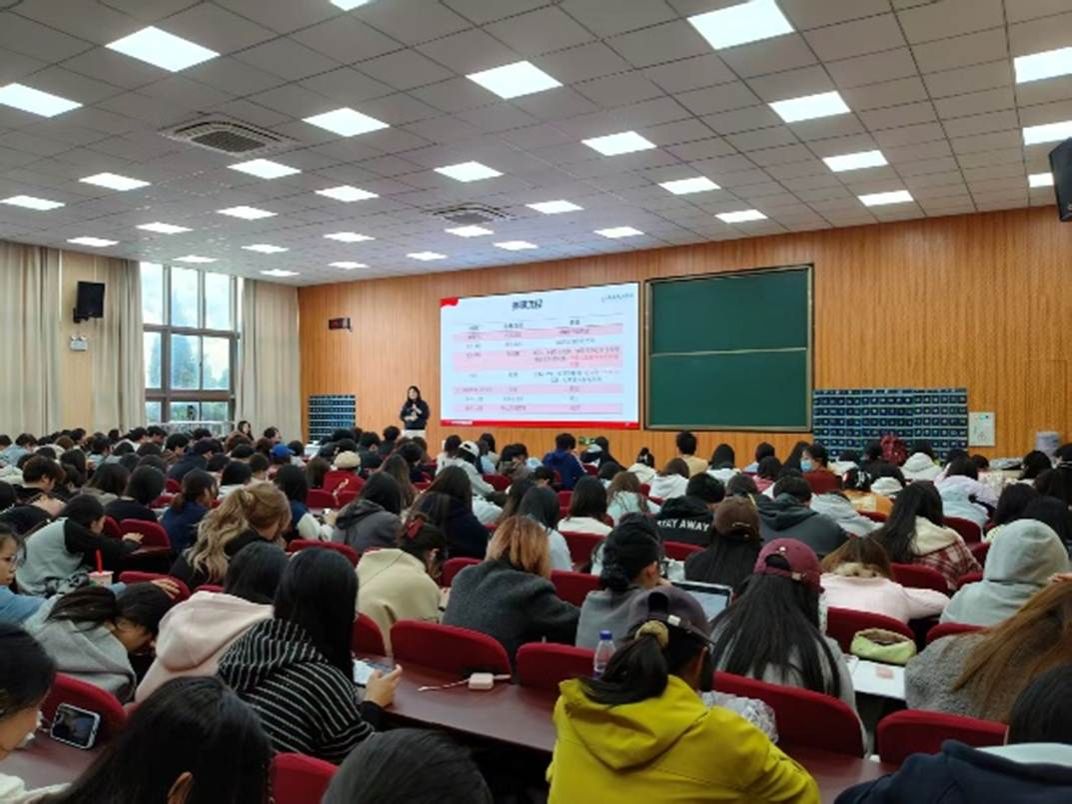 近日,由无锡太湖学院商学院与教务处联合举办的“2026年商学院学科竞赛春季宣讲会”在6号楼122教室顺利举行。本次宣讲会同时也是全国大学生文化旅游与会展竞赛校赛、全国商业精英挑战赛国际贸易竞赛校赛及中国国际大学生创新大赛商学院院赛这三项赛事的启动仪式。活动吸引了三百余名师生到场参与,现场座无虚席,气氛热烈而浓厚。