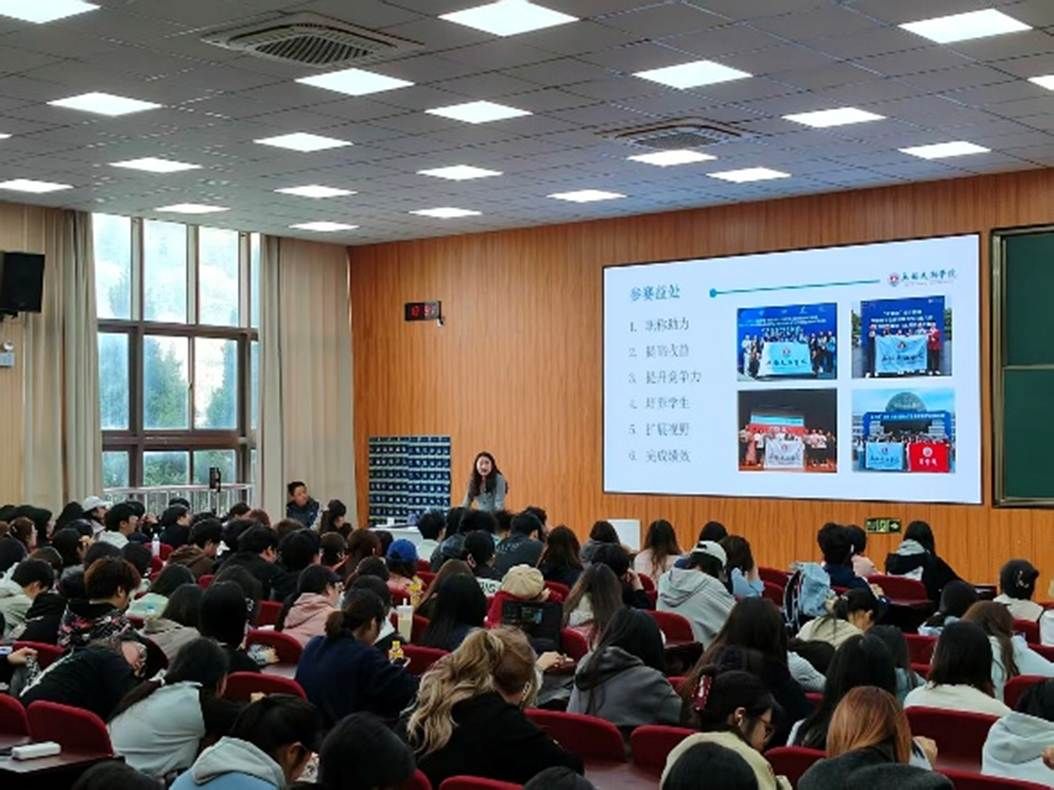 随后,潘湉老师围绕学校学科竞赛认定标准、奖励政策及全国重点赛事榜单等内容进行详细解读,帮助同学们全面地了解学科竞赛体系,进一步点燃大家踊跃参赛、争先创优的热情。