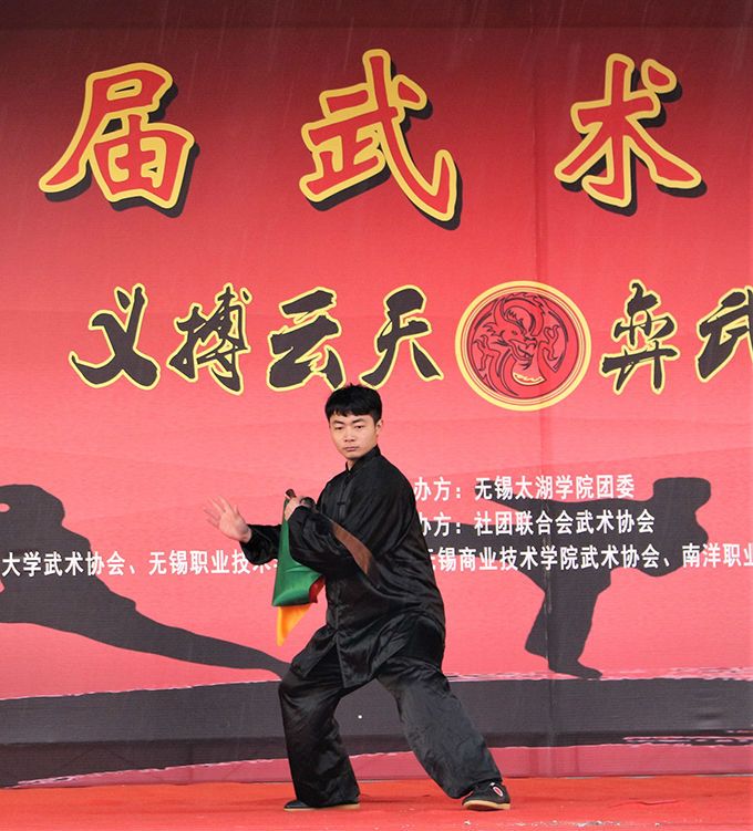 本网讯 12月15日下午,我校大学生社团联合会武术协会第二届“义搏云天,弈武会友”武术文化节活动,在南区操场顺利举行。本次活动由校团委主办,武术协会承办,江南大学武术协会、无锡职业技术学院武术协会、江苏信息职业技术学院武术协会、南洋职业技术学院武术协会、无锡商业职业技术学院武术协会、太湖学院健言社、太湖学院摄影协会联合协办。
