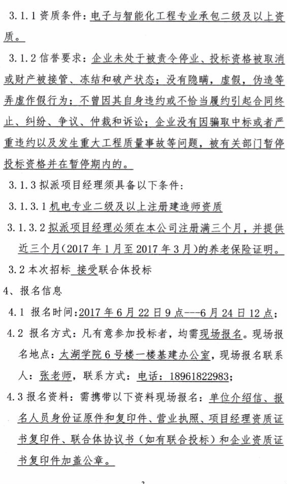 无锡太湖学院工科实验大楼智能化工程招标公告