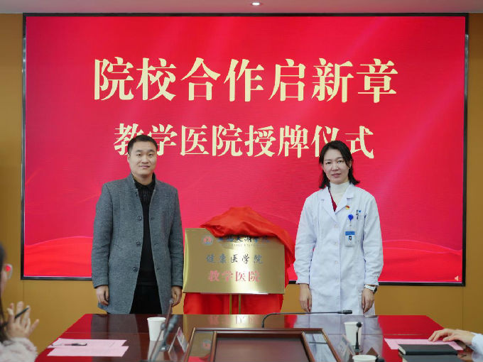 在全体与会人员的共同见证下,活动迎来了激动人心的揭牌时刻。无锡太湖学院健康医学院院长宋绍征与无锡市儿童医院党委副书记、副院长鲍颖芳共同为“无锡太湖学院教学医院”揭牌。红绸滑落之际,标志着双方合作正式迈入制度化、实质化的全新发展阶段,也为护理专业学子搭建起更为优质、广阔的临床实践与职业成长平台。