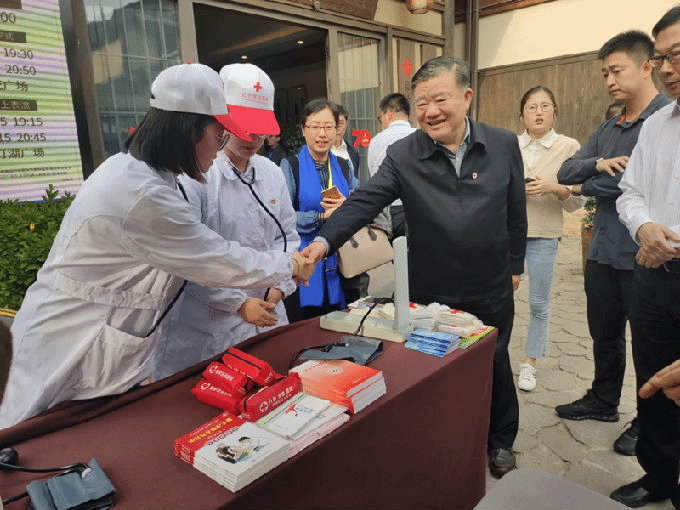 中国红十字会会长陈竺视察慰问无锡太湖学院红十字会拈花湾景区志愿服务队(2019.11.2)