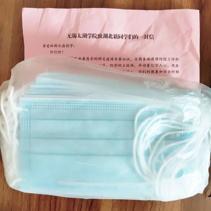 今天,我收到了一封特别暖心的信——无锡太湖学院致湖北籍同学们的一封信,作为湖北籍学生,欣慰之情难以言表,我忍不住立即与家人分享,这份口罩正好满足了自己和家人的需要,同时深切地感受到了学校对我们的牵挂与惦念。