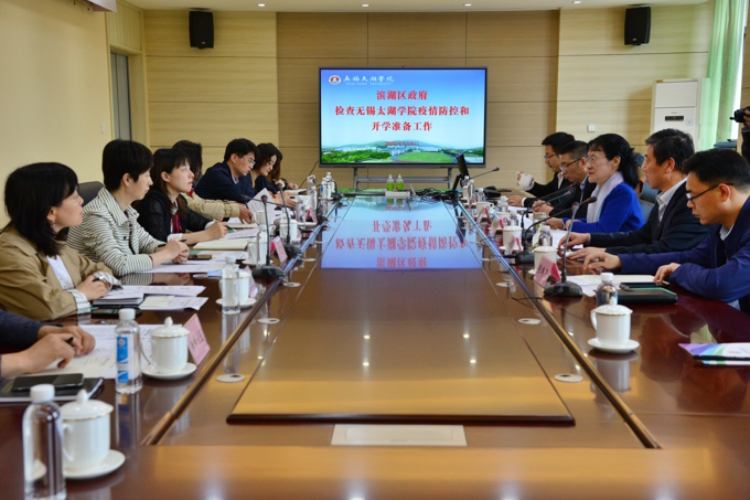 5月6日下午,滨湖区来我校检查防疫和开学工作。检查组组长、滨湖区副区长徐新宇,区政府办、区教育局、区卫健委、荣巷街道等检查组成员莅临指导。学校理事长、党委书记金秋萍,校长李廉水,校领导丁涛、陈鹏飞、阙明坤出席。学校办公室、组织人事处、学生工作处、后勤基建处、保卫处、护理学院、校医院等部门负责人等相关部门负责人参加。