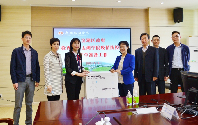 会上,滨湖区政府向我校捐赠了防疫物资。金秋萍书记对检查组同志的莅临指导表示欢迎,并对区政府捐赠的防疫物资表示感谢。她指出,疫情发生以来,学校高度重视防控工作,在各级政府指导下积极采取多项措施,全面提高了学校疫情防控水平。当前,学校重点推进校园基础设施建设,努力扩充学生隔离安置房资源,强化风险应对能力,盼望区政府在学校周边环境治理、校园基础建设等方面予以支持。