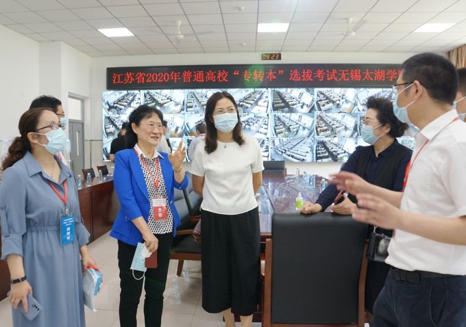 5月24日,江苏省2020年普通高校“专转本”无锡考区选拔考试在无锡太湖学院进行。我校既是无锡市唯一考点,也是江苏省内最大考点,考点考生人数7346人,考场数为248个,考生来源为无锡职业技术学院、江苏信息职业技术学院、太湖创意职业技术学院等在锡大专院校。无锡市政府副秘书长严健媛,省教育考试院高招处副处长沈根农,滨湖区副区长徐新宇,市教育局副局长许敏,市教育考试院院长邹亚伟、副院长朱卓伟到现场指导工作。学校理事长、党委书记金秋萍,校长李廉水,校领导金成、丁涛、陈鹏飞、阙明坤全面巡查各考点情况。学校校办、教务处、后勤基建处、校医室、保卫处、人事处、党委宣传部、信息中心、纪检办公室、学工处、团委等有关部门均按各自分工参加考务工作。