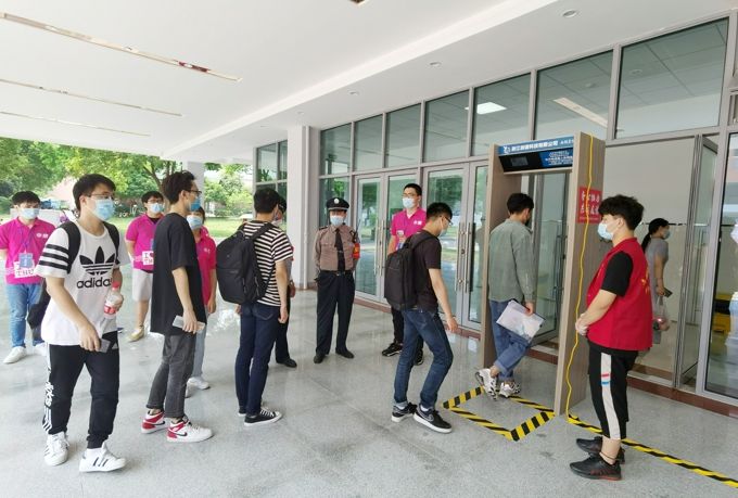 考试过程中,所有考生进入我校后须走体温检测通道,并用红外测温仪进行体温检测。考生和监考、巡考、考务以及涉考工作人员做到全程佩戴口罩、不聚集、不聊天,避免人群交叉。各考场开门开窗,保证空气流动,同时设立了专用隔离考场。在两场考试中间,学校安排消毒保洁人员对考场设施和考试用具定时消毒,保证考场环境整洁和通风。同时,学校还特地为考生、考务人员、监考老师提供了饮食保障。各方通力协作、各司其职,本次考试规范有序,顺利完成,得到了省教育考试院、在锡送考大专院校的高度肯定。