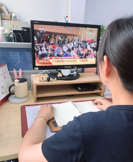 无锡太湖学院马克思主义学院教师荣沁瑜:今天是特殊的一年,姗姗来迟的“两会”在这特殊之年也显得格外引人注目。“两会”的召开不仅得到了国内外广泛关注,同时,及时学习“两会”精神也是我们思政教学的重要工作。作为高校思想政治教育工作者,特别是面临疫情大考,我们要上好网络思政教育大课,结合新形势、新技术,让传统的、有温度的“面对面沟通”拓展为有深度的“键对键教育”、有高度的“屏对屏引领”,形成一股网络育人合力,为实现教育强国梦而不断奋进。