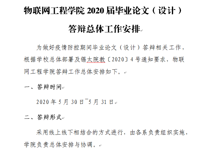 根据教育部《关于在疫情防控期间做好普通高等学校在线教学组织与管理工作的指导意见》和省教育厅相关文件要求,为最大限度减少疫情对学生学业的影响,我校结合疫情防控实际情况,坚持以学生为中心,严格按照规范程序和质量标准,于2020年5月25日至5月31日有序组织了2020届4403名(护理学院除外)本科毕业生线上毕业论文(设计)答辩工作。