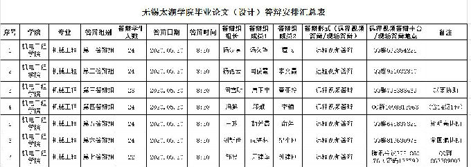 学院答辩工作安排及分组情况