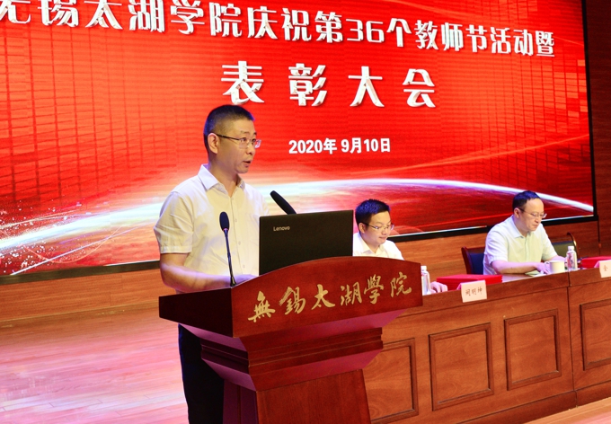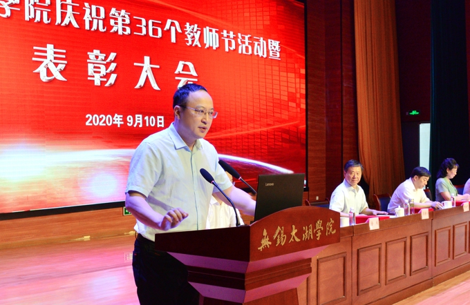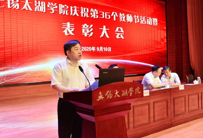 曹佳中副书记首先向我校广大教师和教育工作者致以节日的问候。他指出,近年来,无锡全市高校办学水平不断提升,无锡太湖学院作为全省同类高校中唯一一所厅市共建的应用型本科高校,办学近20年来,坚持加强党的领导,强内涵、引名师、树特色、创品牌,从无到有、从小到大、从弱到强,物联网工程、机械工程、会计学3个专业入选国家一流专业,入选数居全国同类高校之首,为无锡地方经济社会发展输送了大批应用型本科人才,成为了全市高等教育的一张靓丽名片和太湖之畔的璀璨明珠。