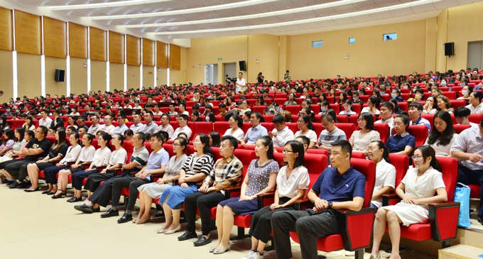 金秋萍书记在讲话中向受表彰的老师和先进工作者表示了祝贺。她指出,近年来,我校大力推进“人才强校”和“强师工程”,一批教师入选省“333工程”和高校“青蓝工程”培养对象等,教师承担数百项国家级、省部级和市厅级课题,获国家和省部级奖项等20多项。今年,学校还在国家社科基金项目上实现重要突破。在今年七一表彰中,学校党委在全市16所高校中是唯一一所高校被无锡市委评选为“先进基层党组织”。她强调,当前我校正在推进加快建成特色鲜明、国内一流的应用型本科大学,全校教职工一是要继续深入学习贯彻习近平总书记关于教育特别是教师工作的重要论述,进一步弘扬尊师重教的优良传统;二是坚定理想信念,自觉践行“四有”好老师要求,牢记为党育人、为国育才使命;三是要切实关心教师成长,优化教师发展环境,努力为教师创造良好的工作生活环境。