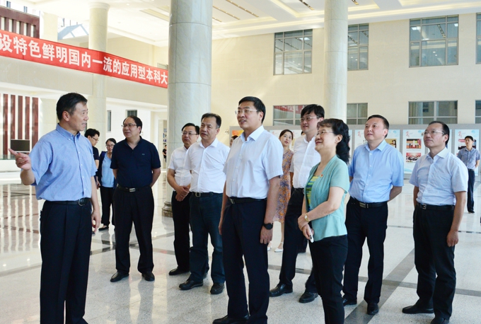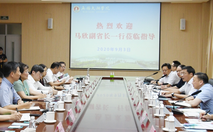 9月3日下午,江苏省副省长马欣一行来到无锡太湖学院,就秋季开学工作、落实立德树人根本任务、加强高校党建思政工作、创新应用型人才培养等进行深入调研,在听取学校办学理念和发展历程后,对“厅市共建”模式给予充分肯定。省政府副秘书长徐光辉,省教育厅副厅长王成斌,省卫生健康委副主任周明浩,省政府办公厅秘书五处处长郁平,省政府办公厅秘书五处副处长孟靓,无锡市副市长周常青,市政府副秘书长严健媛,市教育局局长唐加俊,市卫生健康委主任谢寿坤,滨湖区副区长徐新宇等参加。无锡太湖学院党委书记金秋萍,校长李廉水,校领导丁涛、陈鹏飞、阙明坤,学校相关职能部门负责人陪同调研并汇报相关工作。