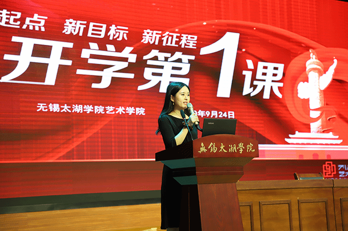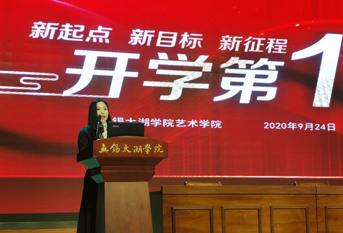 2020年9月24日下午,艺术学院20级新生“开学第一课”在工科大楼报告厅正式开讲。无锡太湖学院副校长陈鹏飞,艺术学院院长张秋平,副院长朱宗明、朱宁出席了本次大会,会议由教学秘书陈予慧老师主持。