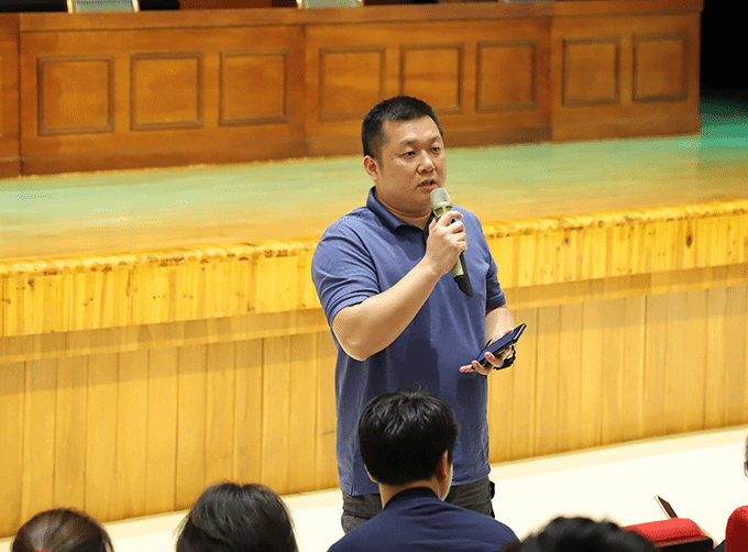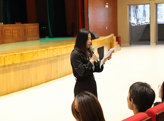会议第三项议程,教师代表产品设计系主任蒋满群副教授进行发言,他结合自己在太湖多年的教学经验对新生谆谆教导。蒋满群老师希望同学们能够牢记“自强不息,经世致用”的校训,在大学生活里对学习全情投入、做到稳扎稳打、学有所长;做到自律与坚持,树立自己的目标并付诸实践,一步一个脚印奋斗到成功。