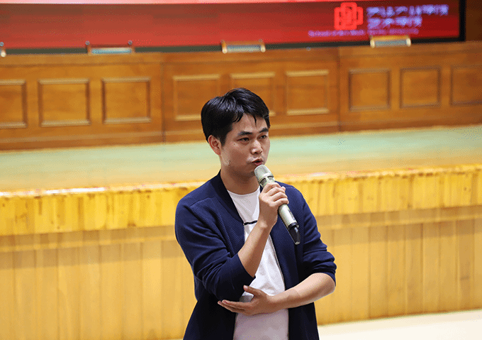 会议第四项议程,学生代表媒体1702邓婧怡同学进行发言。邓婧怡学姐分享了自己在数字媒体设计专业三年的学习经历。她说:只有努力才会有结果,大学生活中,要耐得住学习的寂寞,挺得住路上遇到的坎坷,抵得住诱惑,坚持自己才会取得成功。更希望新生们能够把握这次来之不易的学习机会,养成良好习惯,提高自己的知识储备,逐渐走上成熟和完善。
